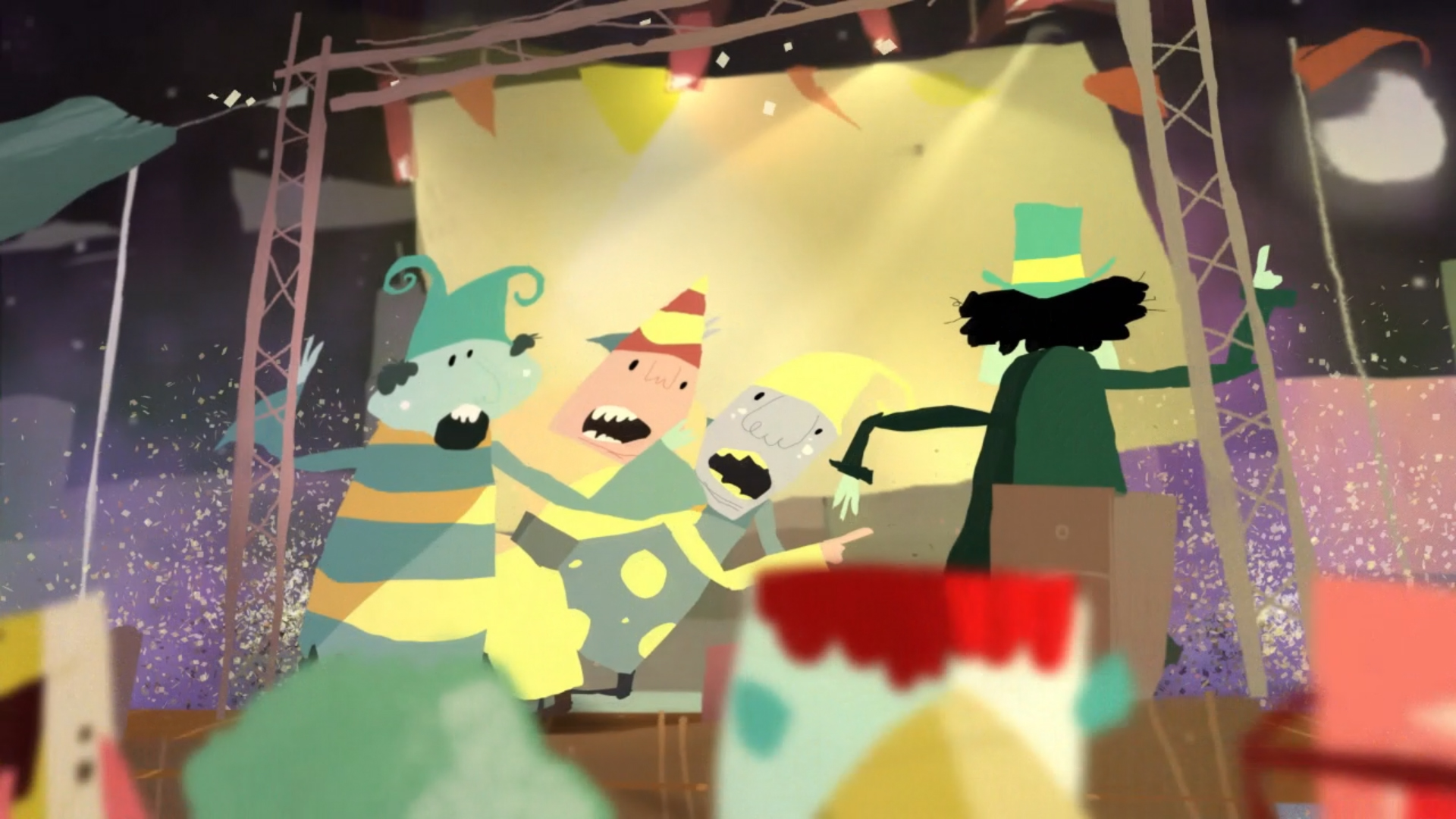 Drawings and internal animation of parodistas, candomberos, y murgueros: Federico Murro